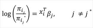 Nominal logistic regression can relate πi to the covariates (inputs) through a set of r-1 baseline-category logits. Taking j* as the baseline category, the model is...